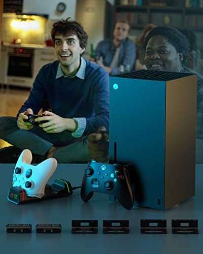🔋Secure & Simple to Use — Vivefox Xbox One controller charger pack has a built-in clever protecting chip, forestall to be over-current, over-heat,over-voltage, short-circuit. overcharge safety. It cuts present movement robotically after the battery is absolutely charged. Evenly insert the battery into the controller, shut the battery cowl of the controllers, after which put them on the charging dock