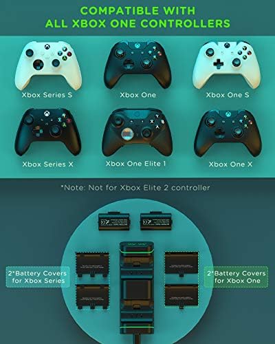 🎮Distinctive Type & Assist — 1 * Xbox Controller Charging Station; 1 * USB Charging Cable(2.6 FT); 2 * 800 mAh Xbox One Rechargeable Battery Packs; 4 * Battery Covers; 18-month guarantee and life-time technical help. Please be at liberty to contact with us for any questions