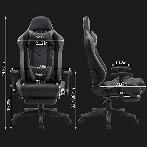 KASORIX Gaming Chair Ergonomic Video Sport Chair Excessive Again Pc Chair Skilled Racing Fashion Snug Gamer Chair with Footrest and Therapeutic massage Backrest and Lumbar Assist (Gray)