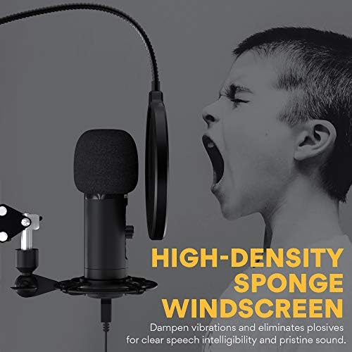 PREMIUM MICROPHONE BOOM ARM SET: Zinc alloy metal mic frame, High-quality metal arms stand and shock mount to isolate USB mic from noise, shock and ambient vibration, And it can protect the pc microphone all-around, which effectively extending the use time of the microphone. Pop filter and windscreen cap can lower wind and Saliva interference, record voice more clear. Whether you record at home or a studio, PM422 USB microphone will take your recording and streaming productions to the next level