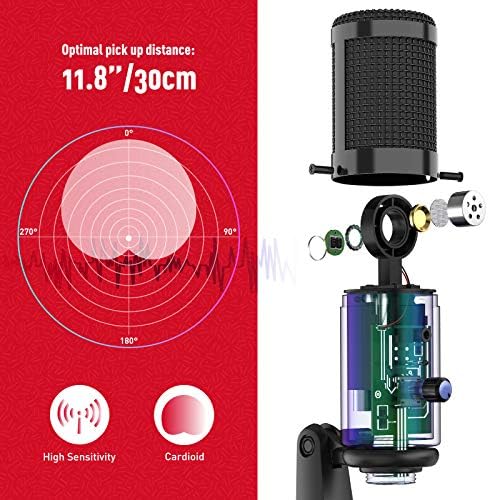 CARDIOID POLAR PICK-UP: The cardioid pick up design gives the microphone a wider pick up range, making the audio recording process easier and more convenient for you. Our USB professional podcast microphone built in High-Sensitive audio processing chip, makes the sound picked up by the mic smoother, crystal clearer and more real. Frequency response of 100Hz-18000Hz makes this USB desk mic has a reverb quality sound, can delivery Rich studio quality sound.