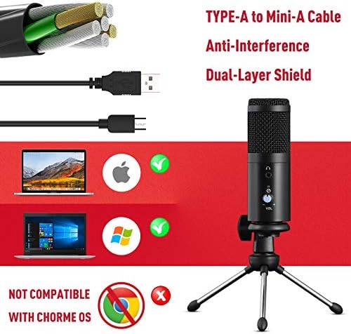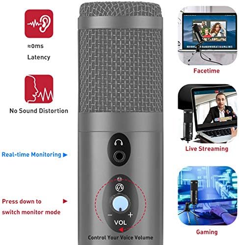 USB Microphone with Headphone Monitor Jack for Mac & Windows Computer Mic for Recording,Streaming,Voiceover,Gaming,Podcasting Video for YouTube Skype Chat with Adjustable Desktop Tripod & USB2.0