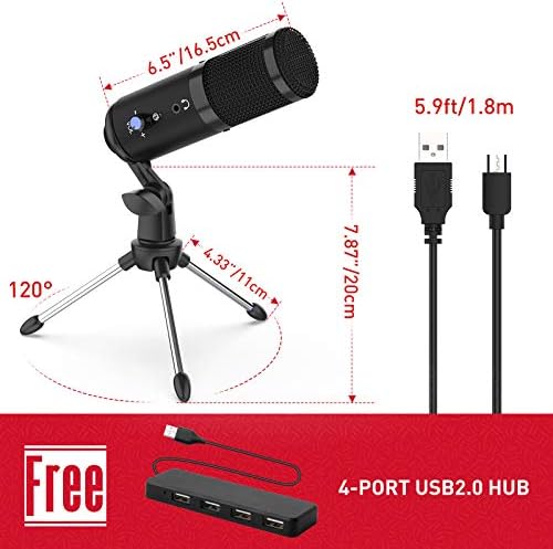 STURDY & FLEXIBLE: USB Mic is made of durable metal base and premium construction, with beautiful appearance and a stable recording experience. Adjustable tripod stand allows you to find a more suitable angle for easier recording. 5 ft USB cable make it suitable for laptop/desktop. Foldable tripod design base makes this mic very portable and easy to store and it doesn’t take up much desktop space when you use it.