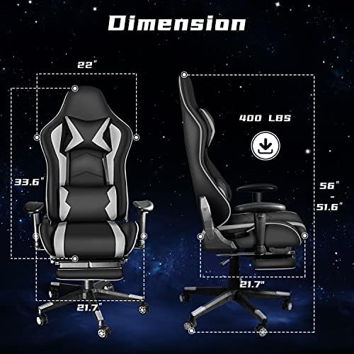 iooHug Gaming Chair with Footrest, Video Recreation Chairs with Adjustable Headrest and Lumbar Help, 400-lb. Ergonomic Laptop Chair, Excessive Again Workplace PC Chair for Adults and Teenagers Gray