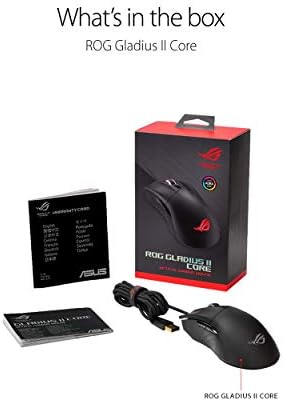 ASUS Optical Gaming Mouse – ROG Gladius II Core | Ergonomic Proper-Hand Grip | Light-weight PC Gaming Mouse | 6200 DPI Optical Sensor | Omron Switches | 6 Buttons | Aura Sync RGB Lighting (Renewed)