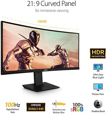 Asus TUF Gaming VG35VQ 35” Curved HDR Monitor 100Hz Uwqhd (3440 X 1440) 1ms FreeSync Eye Care DisplayPort HDMI USB HDR10
