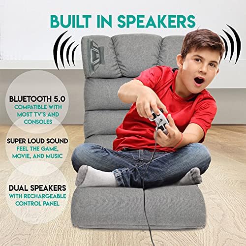 Audio Bum Bluetooth Audio Ground Gaming Chair with Audio system; Foldable Gaming Chair for Children, Teenagers, and Adults. Gamer Chair, Meditation, Motion pictures and Dorm Room Ground Lounger, Gray