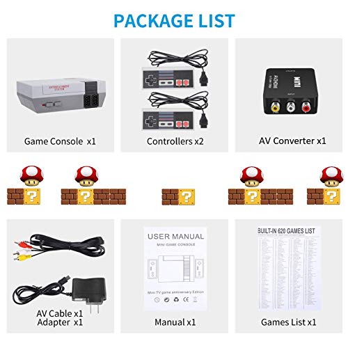 [A Few Tips]: 1.A 3rd-party product,not US model sport console; 2.The picture of the video games is completely different from in the present day’s video games,and might not be suitable with some 4K screens,however it’s nonetheless difficult; 3.If you press “Choose + Begin” collectively,it Won’t return to the menu,whenever you swap video games,press Reset on the machine; 4.Laptops and tablets don’t help HDMI enter,and sport consoles can not show video games on them.