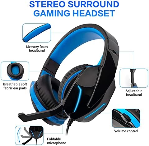 【Blue LED Backlit Gaming Headset】 Breathable delicate material ear pads and adjustable reminiscence foam headband permit you to play video games for a very long time comfortably.The 50mm driver and 105dB sensitivity present highly effective and clear sound with out lacking any sounds within the recreation.