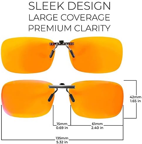 Sunset Eyewear gives this handy and light-weight clip-on 3-pack of blue gentle blocking lenses so you possibly can change your lens primarily based on the time of day and your exercise. The orange block 98.5%, the yellow block 78% and the clear block 50% of all blue gentle penetrating your eyes from screens and synthetic room lighting. These lenses are good for workplace and residential use. Snug and simple put on whereas on the pc or pill, gaming, utilizing your telephone or simply dwelling beneath synthetic lighting. For finest use, put on progressively darker lenses because the day goes on. Ideally, put on the clear from 1pm to 4pm, yellow from 4pm to 7pm and the orange from 7pm till mattress. This may block more and more extra blue gentle as your get nearer to bedtime. Blue gentle prevents the manufacturing and secretion of melatonin, a hormone required for good high quality and restful sleep. Carrying the clear lenses all day is nice too, to forestall eye pressure and complications. The clip attaches the lenses to most glasses. Protection will range primarily based in your glass form and dimension.