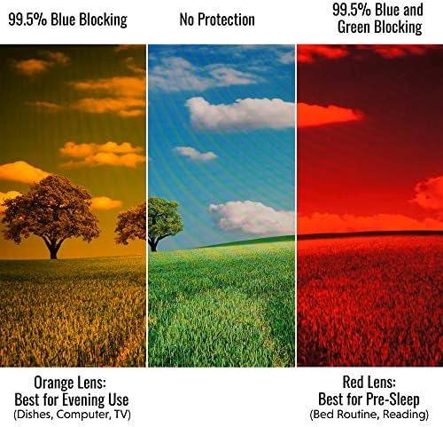 DON’T BE FOOLED BY CLEAR LENS BLUE LIGHT BLOCKING EYEWEAR. Sunset’s three pack gives lenses that block 98.5% (orange), 78% (yellow) and 50% (gentle yellow) for preferences and instances of day.