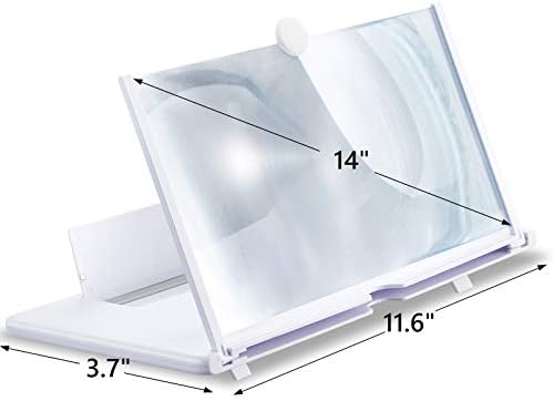 Display Magnifier for Cell Cellphone, LXUNYI 3D HD 14in Cellular Cellphone Display Magnifier Eye Safety with Foldable Stand Display Enlarger for Films, Movies and Gaming Go well with for All Smartphones (White, 14in)