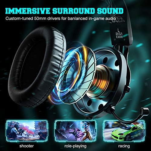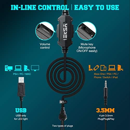 EKSA PS4 Gaming Headset – PC Headset Wired Headphones with Noise Cancelling Microphone&RGB Mild – Gaming Headphones Suitable with PS4/PS5 Controller, Xbox One, Laptop