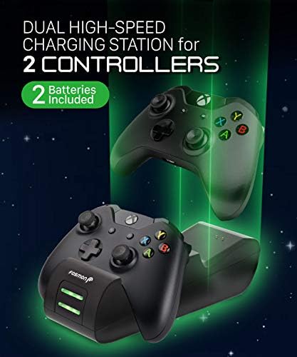 Fosmon Xbox One/One X/One S Controller Charger, [Dual Slot] High Speed Docking/Charging Station with 2 x 1000mAh Rechargeable Battery Packs (Standard and Elite Compatible)