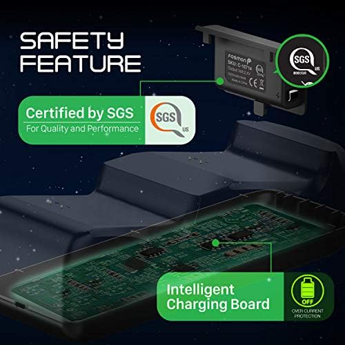[LONGER BATTERY LIFE] The Fosmon controller charging station’s 1000mah NiMH battery packs provide up to 30-33 hours of play time.