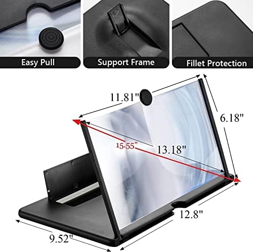 FTYUNWE 14 inch Display screen Magnifier for Cell Cellphone 3D Magnifier Display screen Enlarger for Films,Gaming-Display screen Amplifie with Foldable Cellphone Stand Holder. Suitable with All Smartphones,Black-14in
