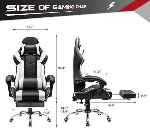 Furmax Gaming Chair Workplace Chair Ergonomic Racing Type Laptop Chair with Footrest Excessive Again Video Recreation Chair Adjustable Swivel Chair with Headrest and Lumbar Help (White)