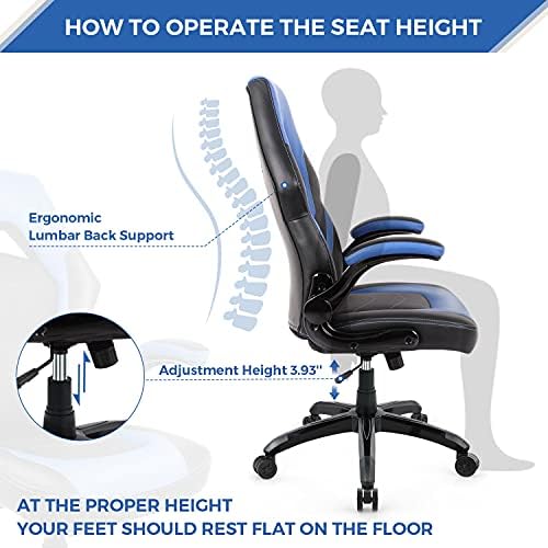 Gaming Chair Ergonomic Workplace Desk Chair Flip-up Armrest and Top Adjustable Seat Dwelling Work Laptop Chair Splicing PU Leather-based with Lumbar Again Help and Swivel Caster Blue
