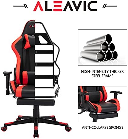 🎮【STURDY CONSTRUCTION & ECO FRIENDLY MATERIAL】Gaming chairs Strong alloy frame covered.Thick padded seat cushion made of high density foam is more comfortable and not easy to deform.Heavy-duty chair base and nylon smooth-rolling casters for great stability and mobility. premium PU Faux leather, easy to maintain & fade resistant.