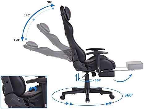【Ergonomic Design】: Seat-height adjustable; 90~170°reclining and rocking; 360°swivel; sturdy five-star toes with heavy obligation; Clean-rolling casters; With the adjustable seat again, this gaming chair is ideal for work and take a nap after a very long time work.