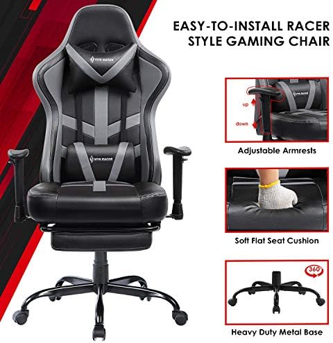 【Sturdy & Durable】The computer gaming chair is designed in great construction with a heavy-duty metal base and frame to last long, which can support up to 250 LBS. Our gaming chairs are made of high-quality PU leather and filled with high-density thick foam.