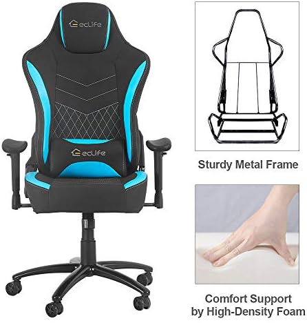 Gaming Chair Racing Footrest Therapeutic massage Pc – Cushioned Consolation Excessive Again PU Leather-based USB Vibrator Ergonomic Recliner House Workplace Video Sport for Children for Reward for PS5 (Blue, d06)
