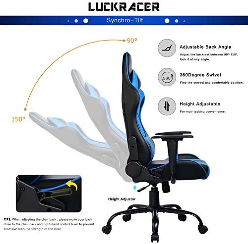 Gaming Chair Therapeutic massage Workplace Pc Chair for Grownup Reclining Adjustable Swivel Leather-based Pc Chair Excessive Again Desk Chair Headrest and Therapeutic massage Lumbar Help Cushion,1 Pack (Blue),by Gtracing