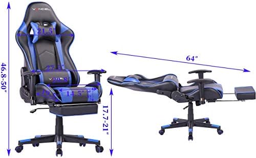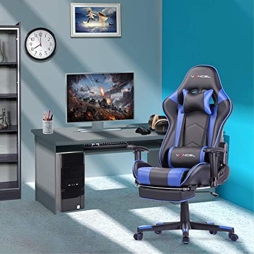 Gaming Chair with Footrest Gamer Chair Pc Chair Therapeutic massage Gaming Chairs Excessive Again Ergonomic Adjustable Workplace Chair with Headrest and Lumbar Assist (Blue)