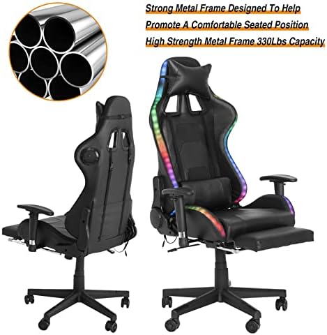 Gaming Chair with RGB LED Lights & Bluetooth Audio system, Adjustable Swivel Gaming Chair with Footrest & Therapeutic massage Lumbar Help, Video Recreation Chair for Grownup,Racing Ergonomic Excessive Again Laptop Chair,Black