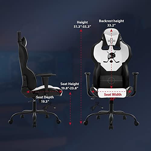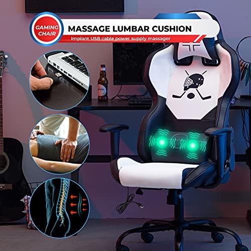 Gaming Chair Workplace Chair Desk Chair with Lumbar Help Headrest Armrest Process Rolling Swivel Therapeutic massage PC E-Sports activities Hockey Racing Chair PU Leather-based Adjustable Ergonomic Pc Chair for Males(White)