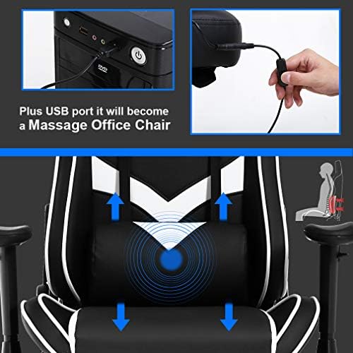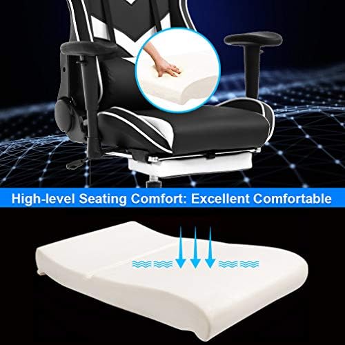 Gaming Chair Workplace Chair Pc Chair with Lumbar Assist Footrest Armrest Headrest Ergonomic Racing Chair Activity Excessive Again PU Leather-based Rolling Swivel Therapeutic massage Desk Chair for Grownup(White)