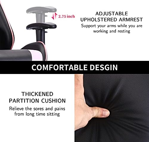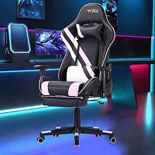 Gaming Chair,PC Racing Chair,Video Recreation Chair,Top Adjustable Swivel Recliner with Footrest and Lumbar Assist, Leather-based and Ergonomic Design Govt Workplace Chair,Pink