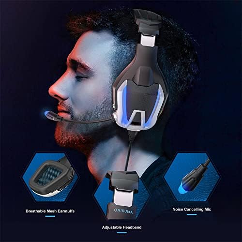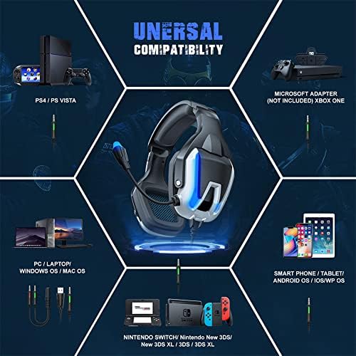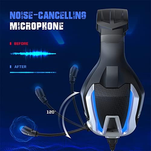 Gaming Headset PC Gaming Headphones with Microphone Headset Over-Ear Noise Cancelling for PS4 PS5 Xbox One (Blue)