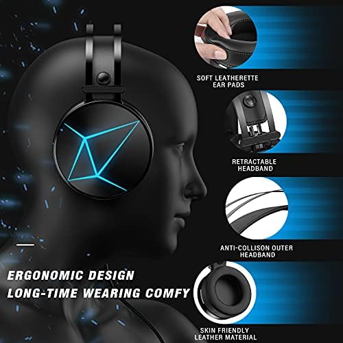[Ergonomically Design]The skin-friendly leather-based materials of the PC gaming headset gives a long-time carrying comfortable. Designed LED lights on the earcups to spotlight the sport ambiance
