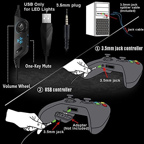 ❶ Compatibility:With 3.5mm audio cable jack (USB jack simply work for LED gentle),wired stereo sound over ear gaming headset helps PC(has 3.5mm plug interface,if not,want microsoft adapter) Ps4,PSP,laptop computer,laptop,iPad,3ds,Mac,pill,cellphones,Cellular Telephones