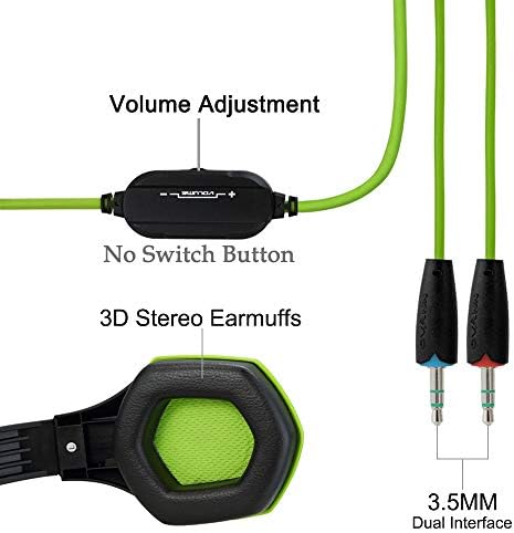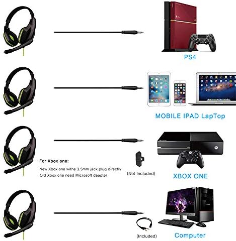 Gaming Headset with Microphone, PS4 PS5 Headset with Noise Cancelling Mic & Audio Management, 3.5MM Wired Over-Ear Headphones for Nintendo Swap, PC, Laptop computer, Laptop, Telephone (Black&Inexperienced)