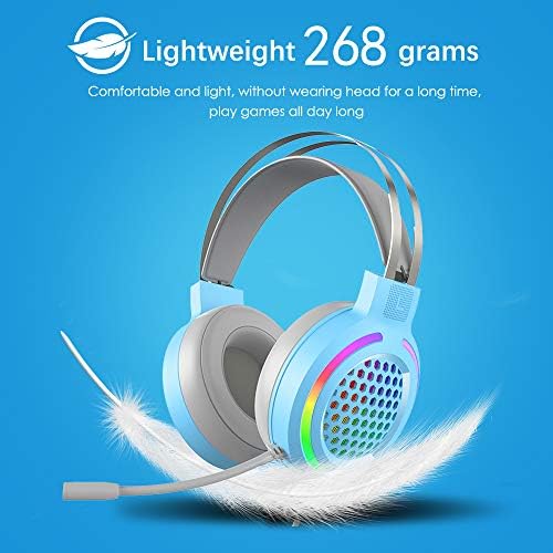 Gaming Headset,Rainbow LED Backlit, 3.5mm Stereo Encompass with Microphone Suitable with Sensible Telephones, PC, PS4 and Different Gaming Units, can Management Quantity and Noise Discount (Blue)