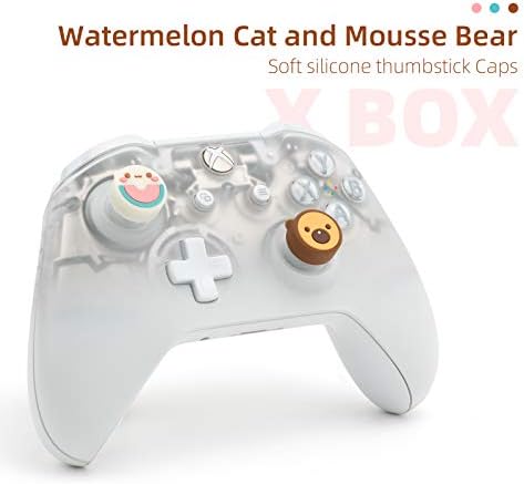 GeekShare Cute Animal Theme Xbox One Controller Thumb Grips, Thumbsticks Cowl Set Appropriate with Xbox One Controller, 2 Pair / 4 Pcs — Watermelon Cat and Mousse Bear