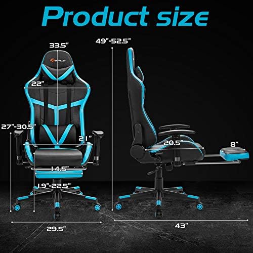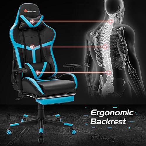 Goplus Gaming Chair, Therapeutic massage Workplace Chair Pc Gaming Racing Chair, Excessive Again PU Leather-based Adjustable Ergonomic Reclining PC Recreation Chair, Rolling Swivel Government Chair with Footrest (Blue)