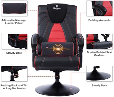 🎉MULTIFUNCTIONAL STRUCTURE: Gaming recliner has a complimentary therapeutic massage lumbar pillow, which might relieve your again fatigue. Video gaming chaircan play music for a very long time, 360 levels spherical steel base with a swivel perform.