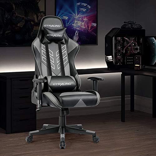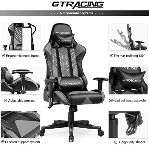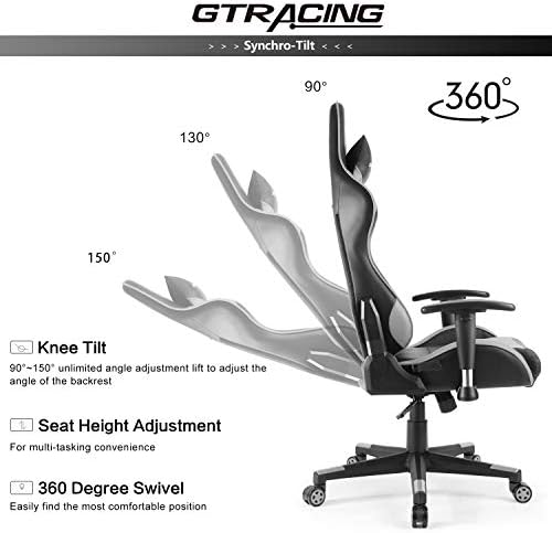 GTRACING Gamer Chair Gaming Chair Ergonomic Racing Chair Backrest and Seat Top Adjustment with Pillows Recliner Swivel Rocker Tilt E-Sports activities Chair Grey Black