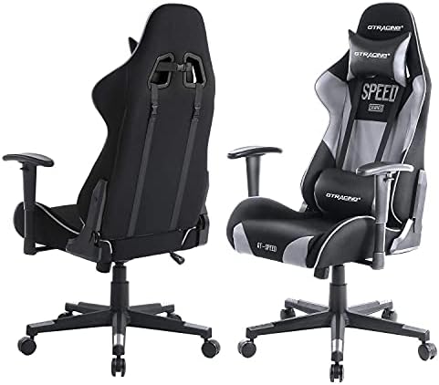 GTRACING Gaming Chair Cloth and Pu Leather-based Ergonomic Laptop Workplace Chair Reclining Racing Chiar Excessive Again Gaming Chair with Headrest and Lumbar Help Gaming Chair for Adults Males Ladies Teenagers Grey