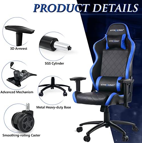 GTRACING Gaming Chair, Ergonomic Heavy Responsibility Racing Video Sport Chair, Excessive Again Recliner Swivel Chair with Headrest and Lumbar Help, (Blue)