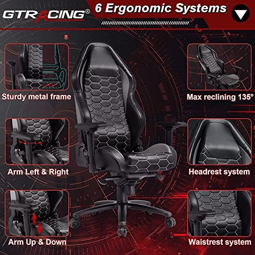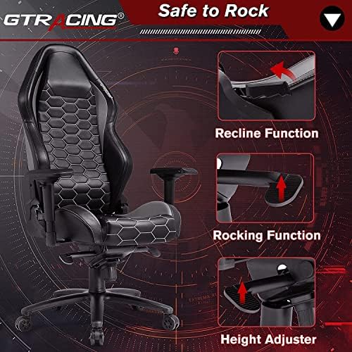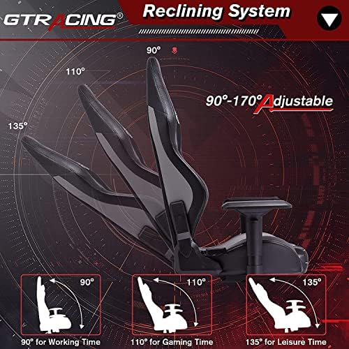 GTRACING Gaming Chair,Ergonomic Heavy Responsibility Laptop Desk Chair with 4D Armrests,Racing Type Recliner with Constructed-in Headrest and Lumbar Assist(Black)