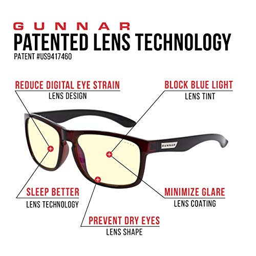 GUNNAR – Gaming and Laptop Glasses – Blocks 65% Blue Mild – Infinite, Merlot/Onyx, Amber Tint