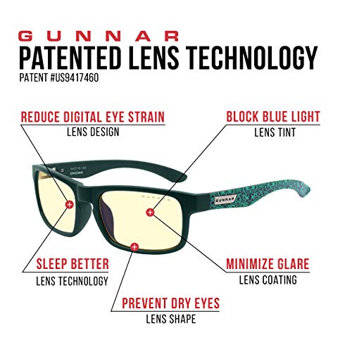 “Recommended by doctors our gaming glasses & blue light glasses (patented lens #9417460) protects your vision, reduces eye strain, headaches and improve sleep quality while viewing tablets, computers, TV, and phones unlike other blue light blocking glasses, our blue light Protection Factor tells you exactly how much of the peak blue light spectrum (450nm) is blocked, to offer the best protection in the market. Available in amber tint. Gunnar protects against symptoms stemming from prolonged screen-staring including migraines, headaches, dry eyes, blurry vision, negative effects of blue light exposure- cataracts and macular degeneration. The preferred blue light Glass for men and women. About Assassins Creed valhalla Edition: Specs (in mm) lens Width: 58, bridge: 18, Temple: 135. Ergonomically designed gaming eyewear with a lightweight frame with a slight 0.2 magnification to give you the best viewing experience. Included with your purchase of our special Edition blue light blocking glasses – acv case and microfiber pouch..