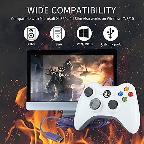 Gurksky Wired Controller Appropriate with Microsoft Xbox 360 & Slim and PC Home windows 10/8/7, with Upgraded Joystick, Double Shock (White)