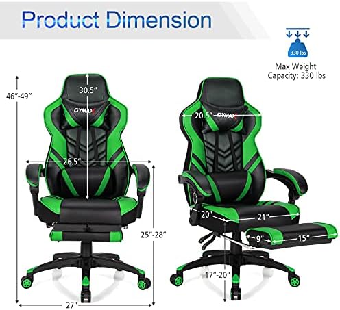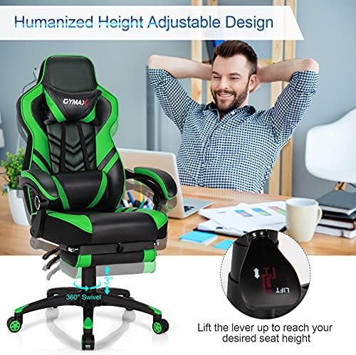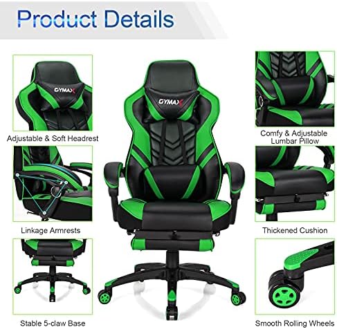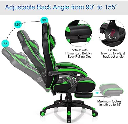 GYMAX Gaming Chair, Racing Type Excessive Again Ergonomic Workplace Chair with Footrest, Headrest, Lumber Help, Swivel Process Chair, Reclining Adjustable Govt Rolling Chair for Grownup/Teenagers (Inexperienced)
