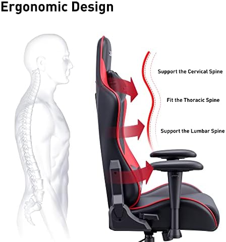 【ERGONOMIC DESIGN】Thicker Backrest And Seat Cushion Make You Sit Extra Comfy. Adjustable Headrest And Lumbar Pillow Can Give You Stronger Assist Of Neck And Again,No Extra Ache Or Fatigue In Again And Neck For Lengthy Time Gaming Or Working.