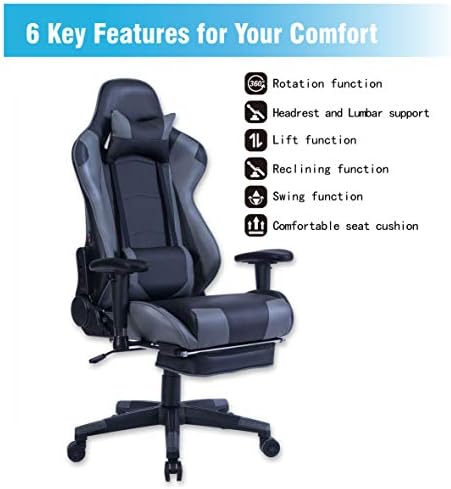 √ ERGONOMIC COMFORT:A racing-style gaming chair that gives luxurious and luxury,with detachable headrest pillow,again therapeutic massage perform and lumbar cushion,whether or not it is used for intense gaming classes or lengthy work days.